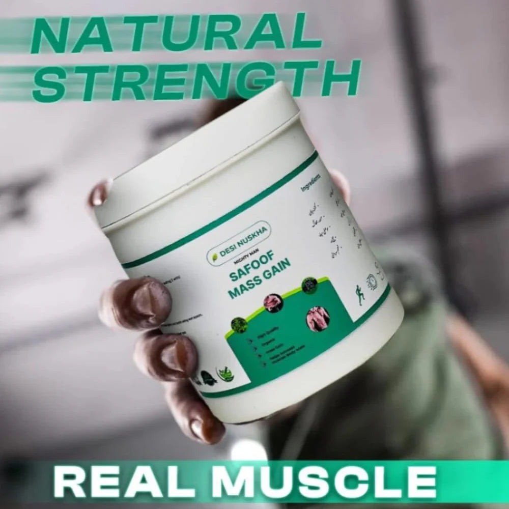 Unlock your body's natural potential with Safoof Mass Gain, a powerful herbal blend crafted to support healthy weight gain and overall vitality. Made from 100% natural ingredients sourced from trusted herbal farms, this unique formula is designed to improve digestion, enhance nutrient absorption, and boost metabolism - helping you achieve a balanced and healthy physique naturally. Each serving of Safoof Mass Gain is enriched with a synergistic mix of Kalwanji, Ajwain, Mint, Saunf, Ginger, Green Tea Extracts, and Carom Seeds, carefully selected for their time-tested benefits in traditional wellness. These potent herbs work together to strengthen appetite, improve gut health, and provide sustained energy throughout the day. •Kalwanji (Black Seeds):Supports metabolism and immunity. 。Ajwain & Carom Seeds: Promote healthy digestion and appetite. • Mint & Saunf (Fennel): Soothe the stomach and aid nutrient absorption. • Ginger: Enhances metabolism and energy levels. Green Tea Extracts: Rich in antioxidants to support overall wellness. Free from chemicals, preservatives, and arti..c additives, Safoof Mass Gain is safe for daily use and suitable for both men and women. Whether you're looking to build muscle, regain healthy weight, or simply feel more energized, this herbal formula is your natural partner on the journey to better health and vitality. Experience the power of nature. Gain strength, energy, and confidence -the herbal way with Safoof Mass Gain.